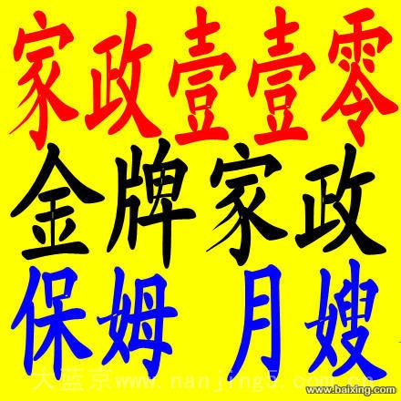 南京家政110服务网是经工商、税务、质检部门登记注册。有独立法人资格。 本公司提供保姆、家庭保洁、公司保洁、月嫂、育儿嫂、催乳师、护理老人、钟点工、保姆、接送儿童、病人陪护、老人陪护等全方位家政服务。为众多家庭和单位客户提供了专业的保洁家政服务,公司有十几年经验丰富的管理人员和上百名专业保洁员工/专业月嫂/专业育儿嫂/专业催乳师等各类家政服务人员。