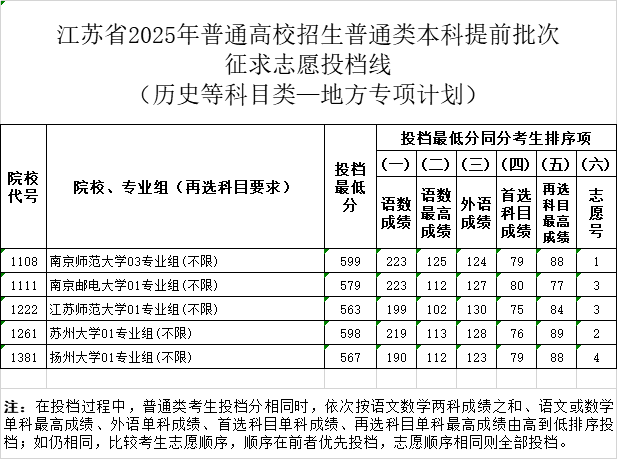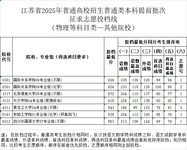 2025江苏省高招普通本科提前批征求志愿投档线公布