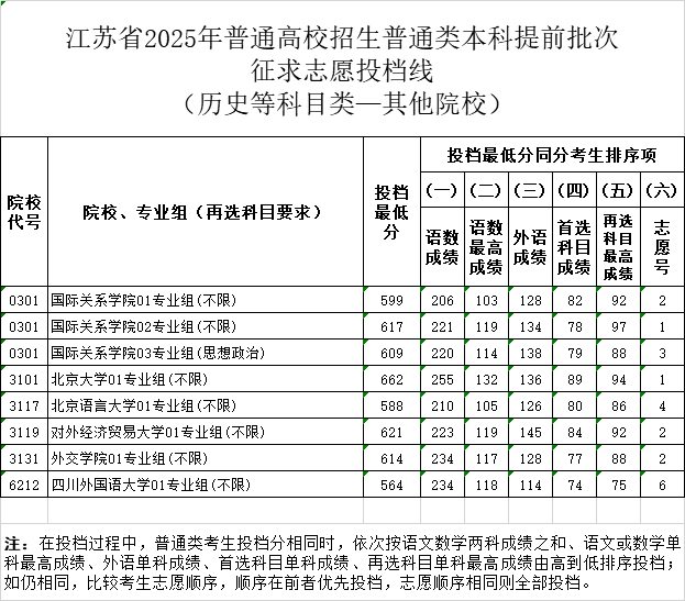 江苏省高招普通本科提前批征求志愿投档线公布