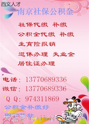 南京社保公积金代补缴 户口人事档案挂靠 生育险报销