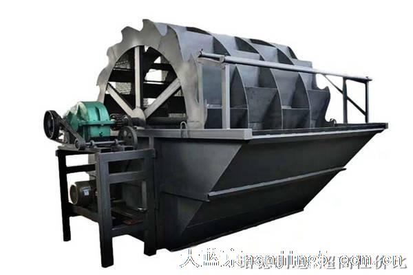 轮式洗砂机工作时, 砂石料被喂入洗砂机中。轮斗在传动的带动下进行,将砂水搅动起来,并将砂石从水中捞出来,轮斗脱离水面之后,轮斗中的砂石被保存在轮斗中,水和砂石中的杂质从轮斗上的筛网中漏出,从而起到了清洗的作用。 在洗砂中,轮斗对水中的砂石不断进行搅动和翻腾,促进了砂石中的杂质与砂石的分离,起到了一 定的清洗作用。